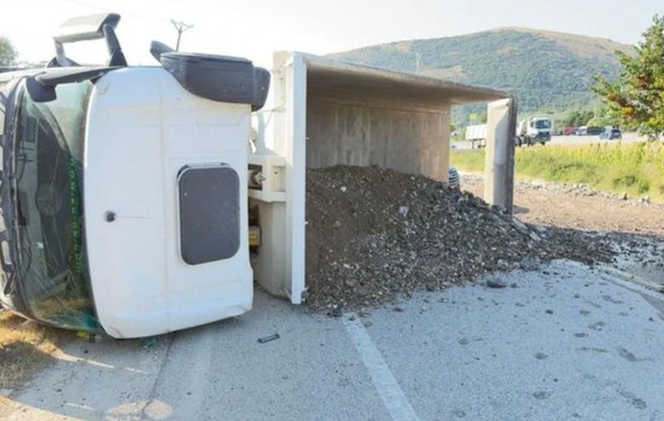 Një kamion është përmbysur në autostradën Durrës-Tiranë