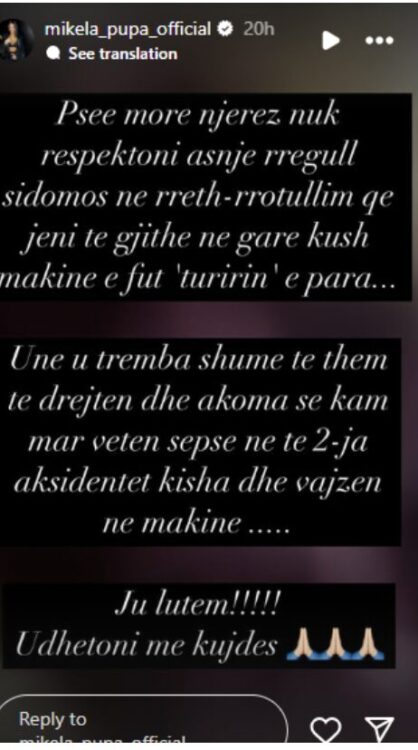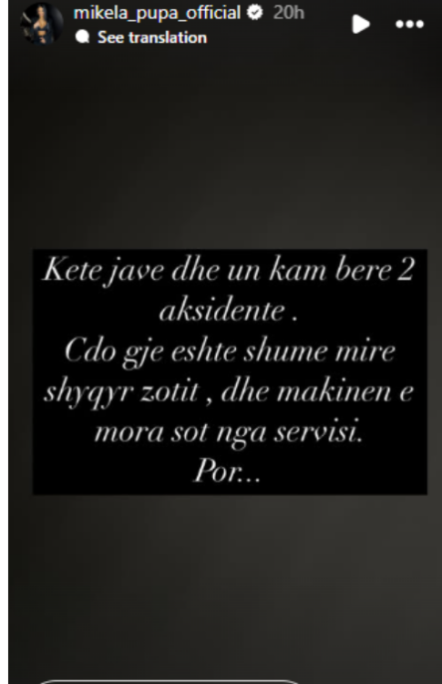 me ndjekësit ku tregon se ka bërë aksident teksa ishte me vajzën në makinë.