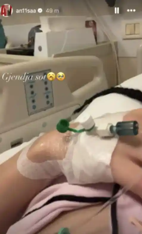 Vetë këngëtarja ka ndarë një Story nga spitali, ku shihet me serum në dorë dhe mbishkrimin shkurt: “Gjendja sot”.
