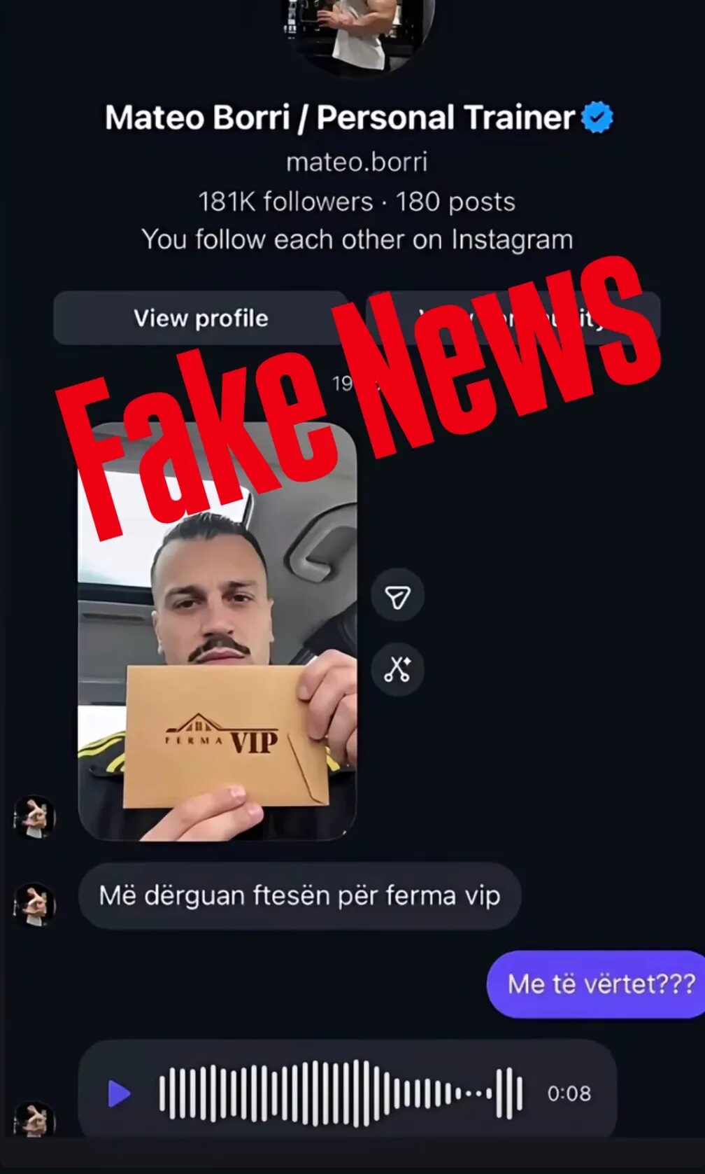 Një foto po qarkullon me shpejtësi në rrjetet sociale, ku Mateo Borri, ish-finalisti i “Big Brother VIP Albania 5”, shihet me një zarf të “Ferma VIP” në dorë.