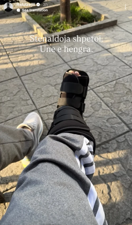 Përmes një fotografie të ndarë në InstaStory, Luizi ka treguar njërën këmbë të vendosur në një pajisje ortopedike, e cila përdoret zakonisht pas lëndimeve fizike apo thyerjeve.