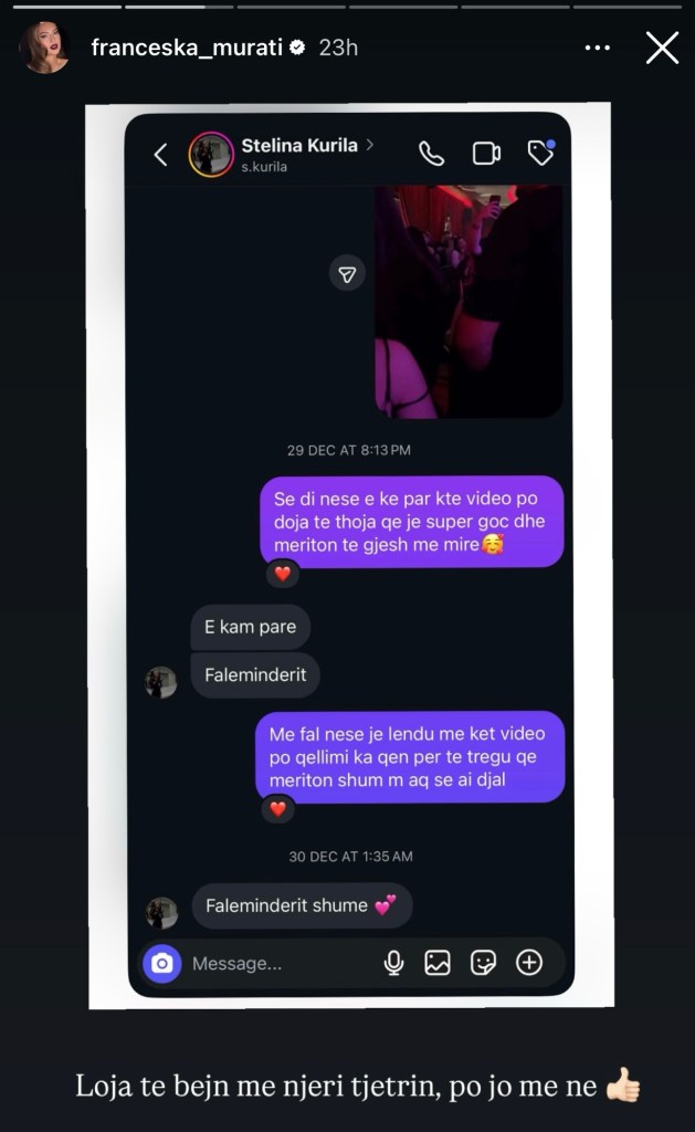 “Loja të bëjnë me njëri-tjetrin, por jo me ne“, shkruan Françeska në foton e publikuar.