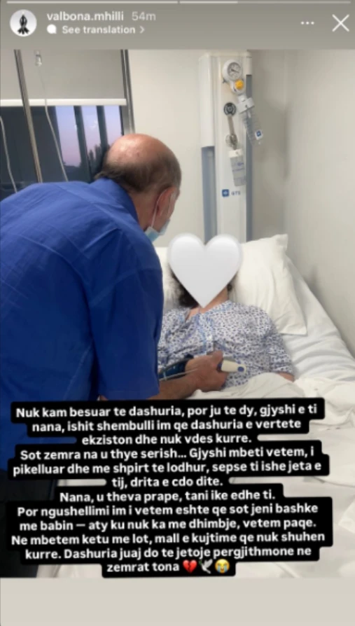 Moderatorja njoftoi se gjyshja e saj ka ndërruar jetë dhe ikja e saj i ‘theu zemrën sërish’. Valbona ka publikuar në “Instastory” një fotografi ku gjyshja shfaqet e shtrirë në krevat dhe pranë saj qëndron bashkëshorti.