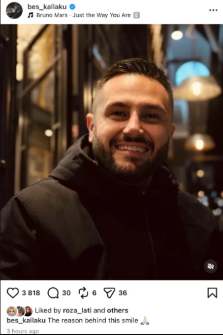 Vetëm pak kohë pas qarkullimit të videos, Besi ka postuar një foto të tij duke qeshur, me diçiturën: “The reason behind this smile 🙏🏻” (Arsyeja pas kësaj buzëqeshjeje).